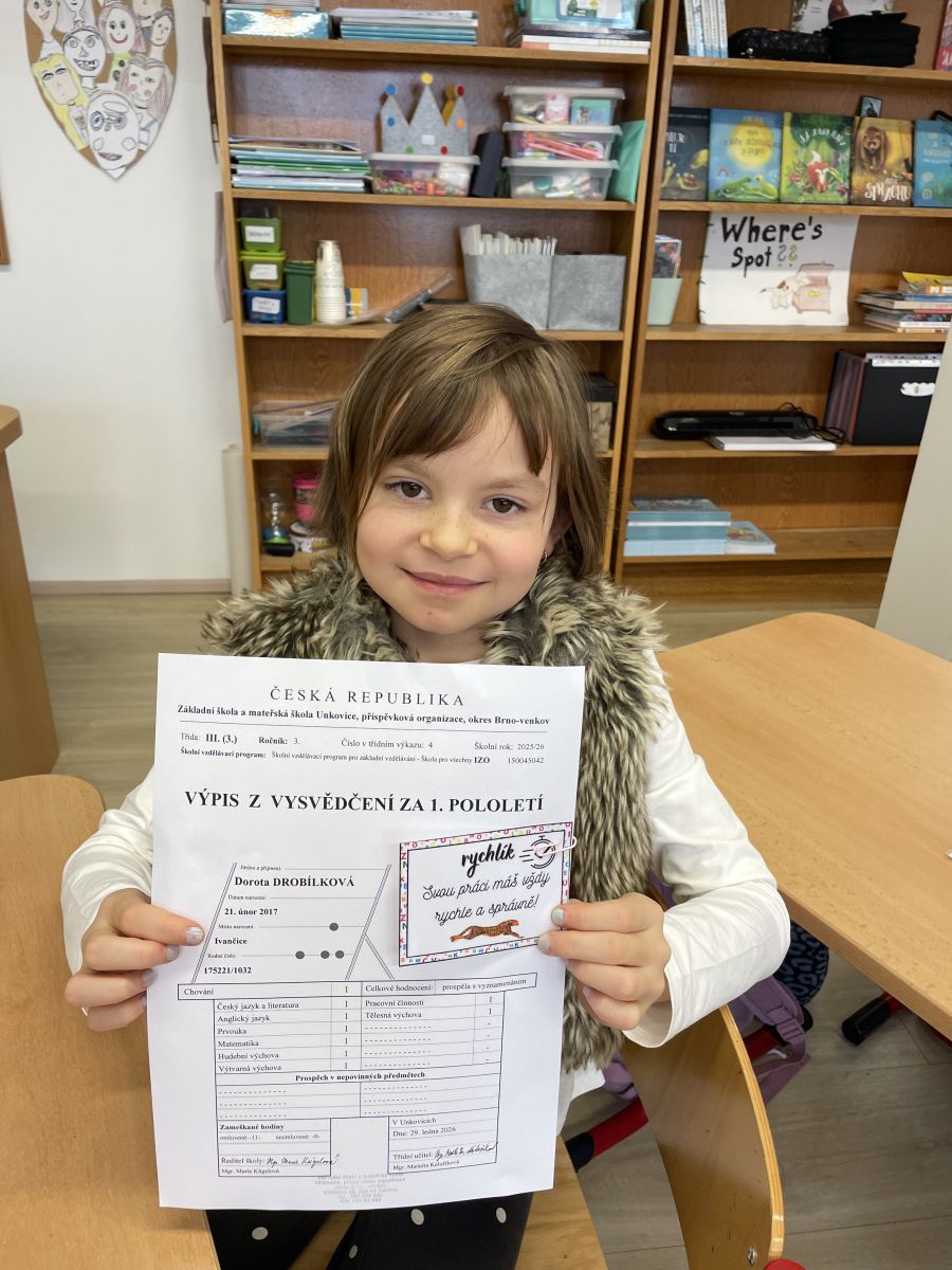 Pololetní vysvědčení - 3. třída